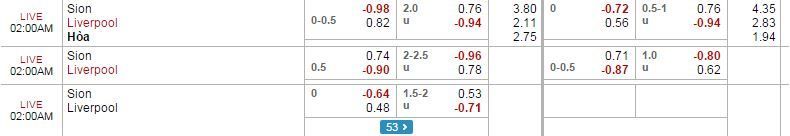 Trận lượt đi có không quá hai bàn thắng được ghi. 5/6 trận mới đây của Sion có kết quả tương tự. 2/3 trận vừa qua của Liverpool về Xỉu.