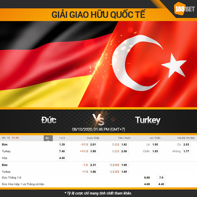 Xét về đẳng cấp, thành tích đối đầu, sân bãi và chất lượng đội hình, thầy trò HLV Jochim Loew trên lý thuyết là vượt trội hoàn toàn so với Thổ Nhĩ Kỳ. Kèo chấp theo TLCA ở mức 0:1 ¼ cho thấy sự chênh lệch của 2 đội là rất lớn.