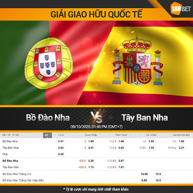 Vì vậy khả năng Bò Tót thua trận đang là cao hơn. 3 lần gặp gần nhất của 2 đội ở mặt trận giao hữu đều có trên 2 bàn. Do vậy Bồ Đào Nha và Cửa Tài là các lựa chọn đầu tư tốt hơn ở trận này.⚽ Tỷ lệ cược trên trang 188BET luôn cập nhật sự thay đổi theo thời gian.