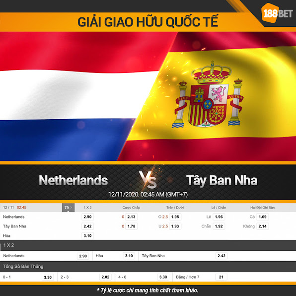 5 trận gần nhất của Hà Lan ra Xỉu. Tây Ban Nha cũng có 4 lần về Xỉu trong 5 trận đấu vừa qua. Kèo Xỉu và Cửa Trên do đó là 2 lựa chọn sáng giá hơn cho nhà đầu tư ở trận này.