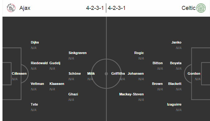 Dự đoán kết quả : Ajax 2-0 Celtic