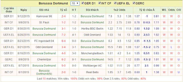 0- Dortmund chưa từng thất bại trong việc phá lưới đối phương kể từ đầu mùa giải tới giờ.
