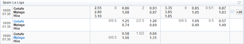 5/6 trận giữa Getafe và Malaga có ít hơn 2.5 bàn.